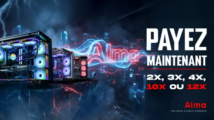 Oui, FlowUP propose le paiement de son PC Gamer en plusieurs fois via Alma, de façon sécurisée. Selon les offres disponibles, il est possible de régler son PC Gamer en 2x, 3x ou jusqu'à 12 mensualités.