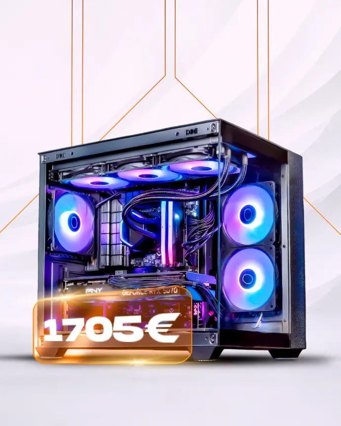 Pour un PC Gamer milieu de gamme performant en QHD (1440p) avec une RTX 5060 ou RTX 5070, le budget tourne entre 1 300 € et 2 000 €.