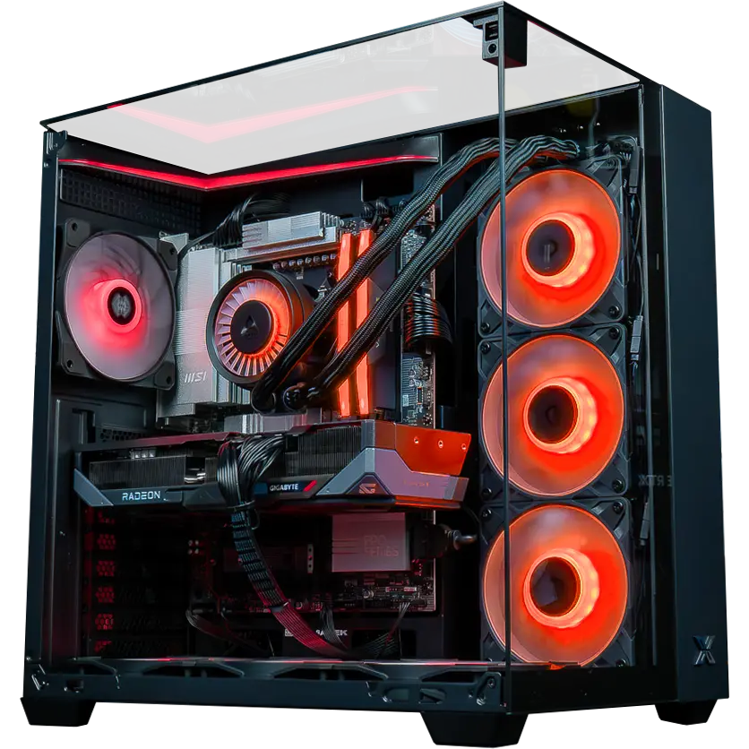 PC Freezer RX 9070 XT. Une brute. 4K ultra fluide avec FSR 4. Ryzen 7 9800X3D ou 7800X3D. 32 Go DDR5. SSD Gen 4 jusqu’à 2 To. On lance, ça tourne. On pousse tout à fond, même en 4K rien ne bouge.