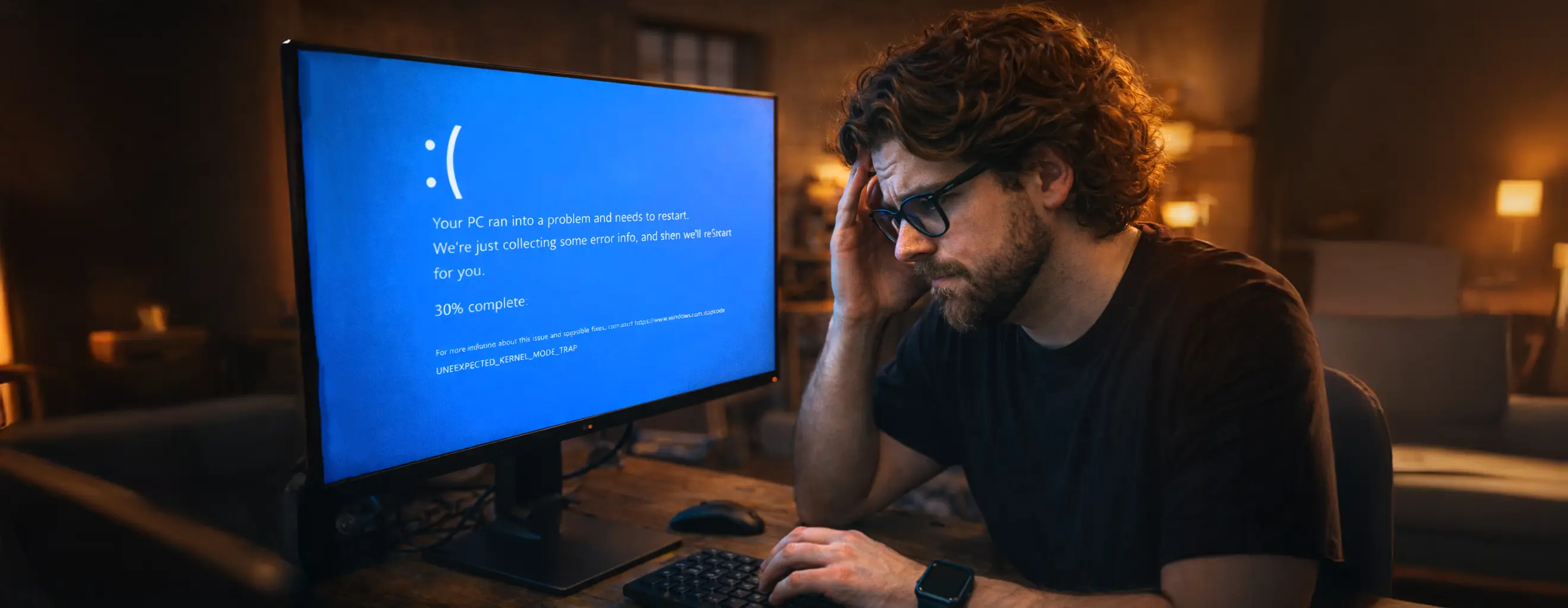 Un écran bleu (BSOD) sur Windows, c’est Windows qui s’arrête net parce qu’il a détecté une erreur “critique” (driver, matériel, fichiers système, stockage, etc.). Ça peut arriver après une mise à jour, l’installation d’un logiciel, un nouveau composant… ou sans raison évidente.