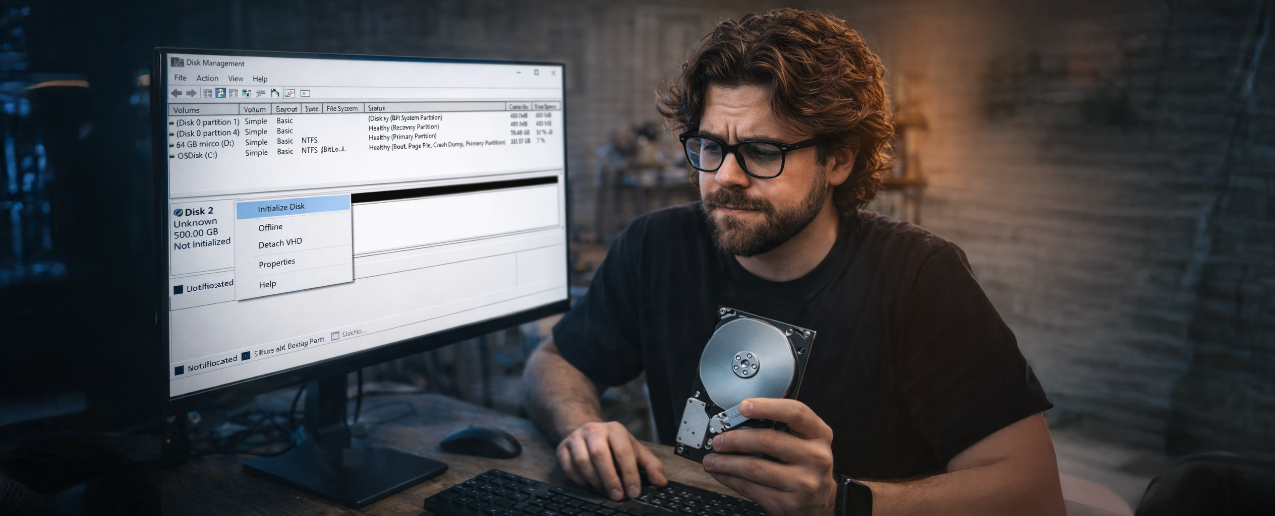 Ce guide te montre pas à pas comment initialiser un disque dur de manière sûre et propre — que ce soit un HDD classique, un SSD SATA ou NVMe.