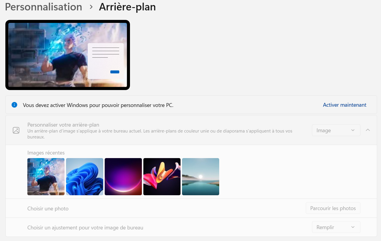 - Message “Activer Windows” en bas à droite.