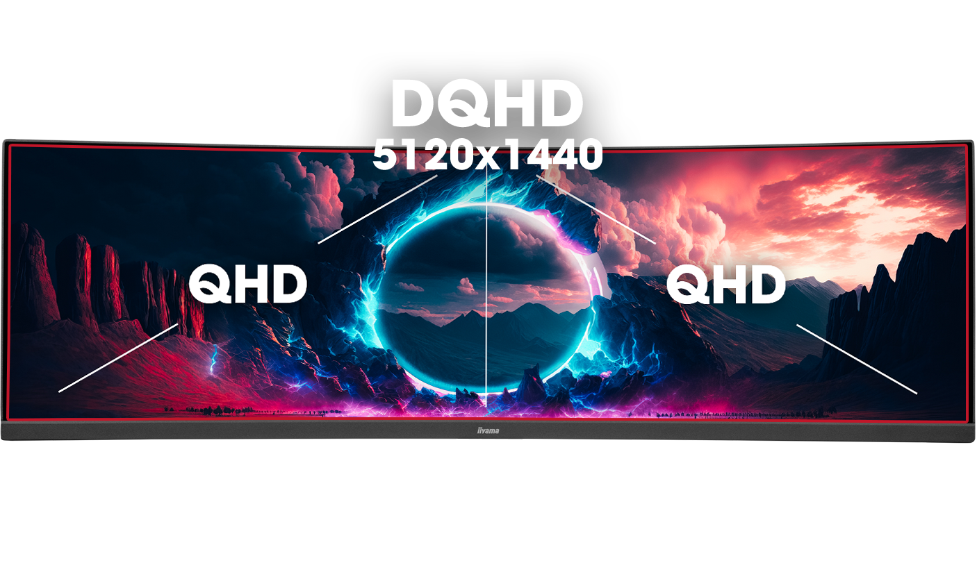 Les moniteurs ultra larges au format 32:9 dotés de la résolution DQHD 5120 x 1440, également connue sous le nom de Dual QHD, offrent des images d'une netteté exceptionnelle qui donnent vie à vos jeux. Ces moniteurs vous permettent d'organiser votre station gaming pour une expérience de jeu inégalée. Vous ne manquerez aucun détail !