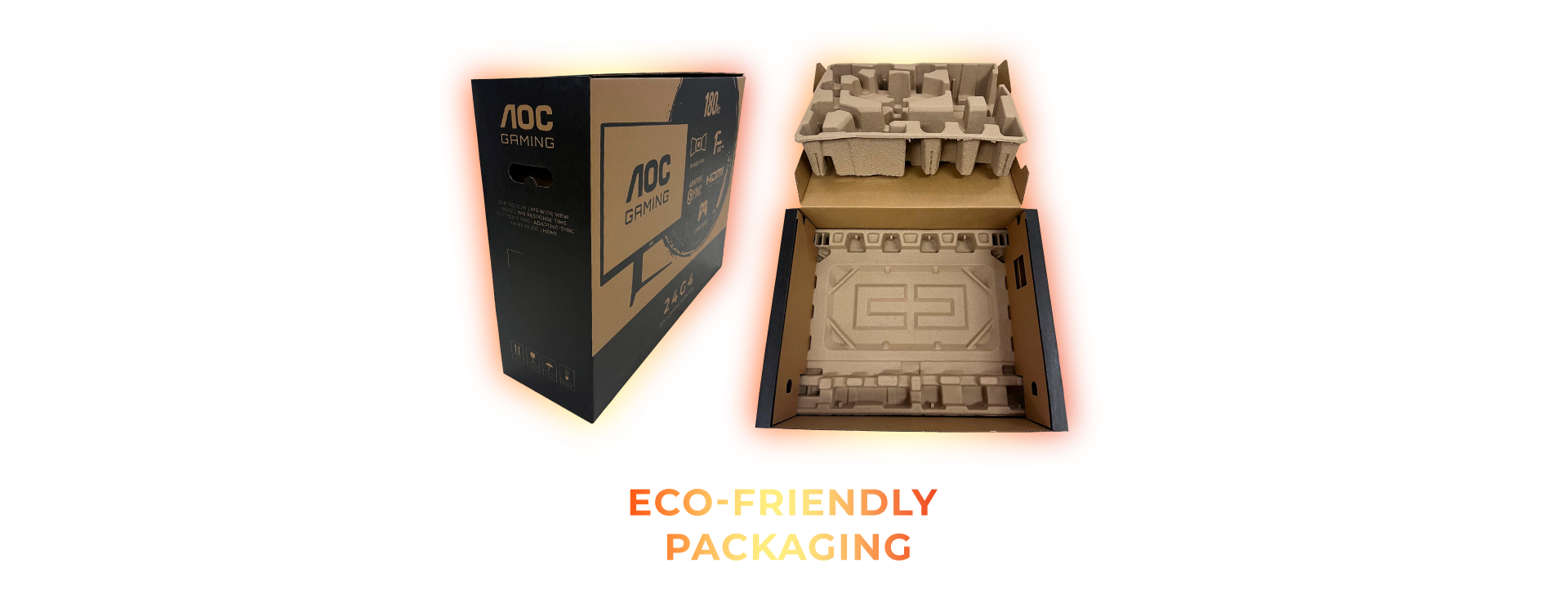L'emballage des moniteurs AGON d'AOC est fait de papier-plastique 100 % recyclable et de boîtes en carton recyclables à 90 %, contribuant ainsi à réduire les besoins de matériaux vierges et à minimiser les déchets.