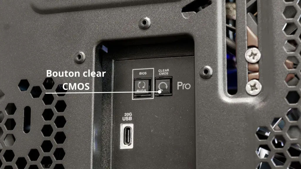 Il suffit d'éteindre complètement le PC, débrancher l’alimentation et d'appuyer sur le bouton Clear CMOS. La configuration BIOS sera alors réinitialisée.