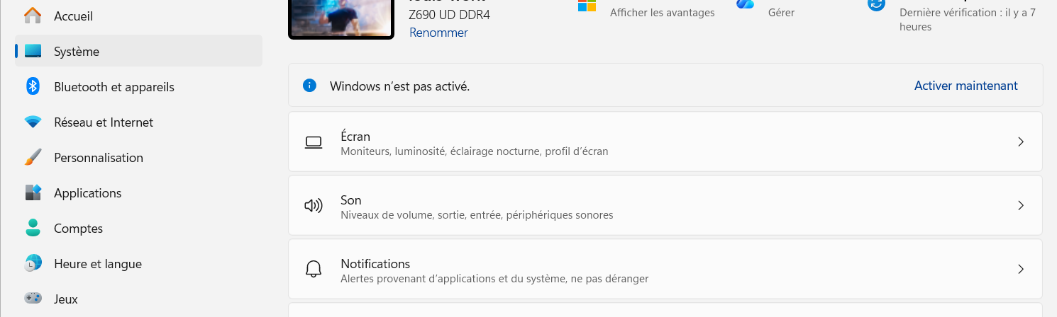 - Paramètres → Système → Activation
