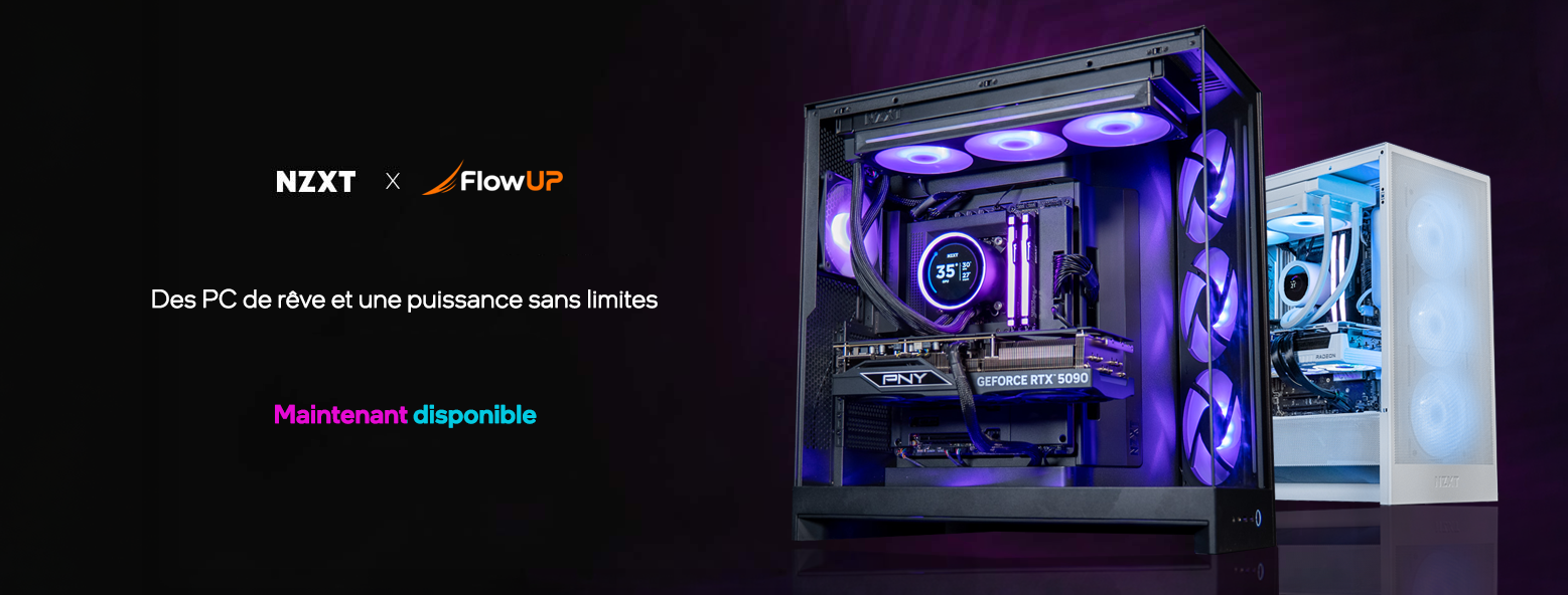 Ryzen 5 9600X, RTX 5070, 32 Go de DDR5 et un Kraken RGB dans un NZXT H5 Flow : ce setup, c’est du FlowUP x NZXT pur jus. Beau, efficace, maîtrisé.
