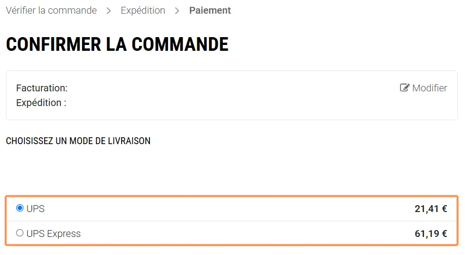 - UPS express : délai de 24 heures (hors weekend et jours fériés)