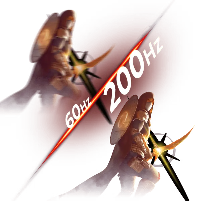 Une fréquence de rafraîchissement de 200Hz est plus de trois fois supérieure au 60Hz standard du marché. Libérez le plein potentiel de votre carte graphique : en éradiquant les distorsions à l'écran, le flou dans les mouvements et les saccades, votre jeu défile comme il le doit et vos performances atteignent de nouveaux sommets.