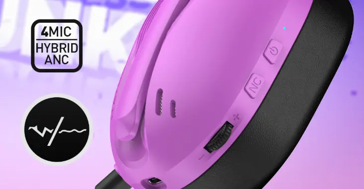 Les boutons directement accessibles permettent d’ajuster le volume, activer l’ANC ou gérer l’alimentation sans quitter ton jeu ou ta musique. Une ergonomie pensée pour une utilisation simple et efficace.