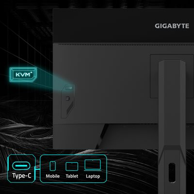 Le KVM intégré de GIGABYTE redéfinit ce que les moniteurs peuvent faire ! Cette fonctionnalité exclusive est conçue pour vos besoins de jeu et de productivité, vous permettant de contrôler des appareils USB Type-C tels que des smartphones et des tablettes sur le moniteur via un câble et un bouton intelligent.
