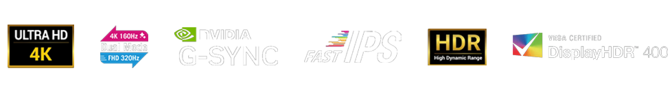 - Moniteur gaming 27 pouces 4K (3840 x 2160) avec double mode polyvalent (4K @ 160 Hz ou FHD @ 320 Hz)