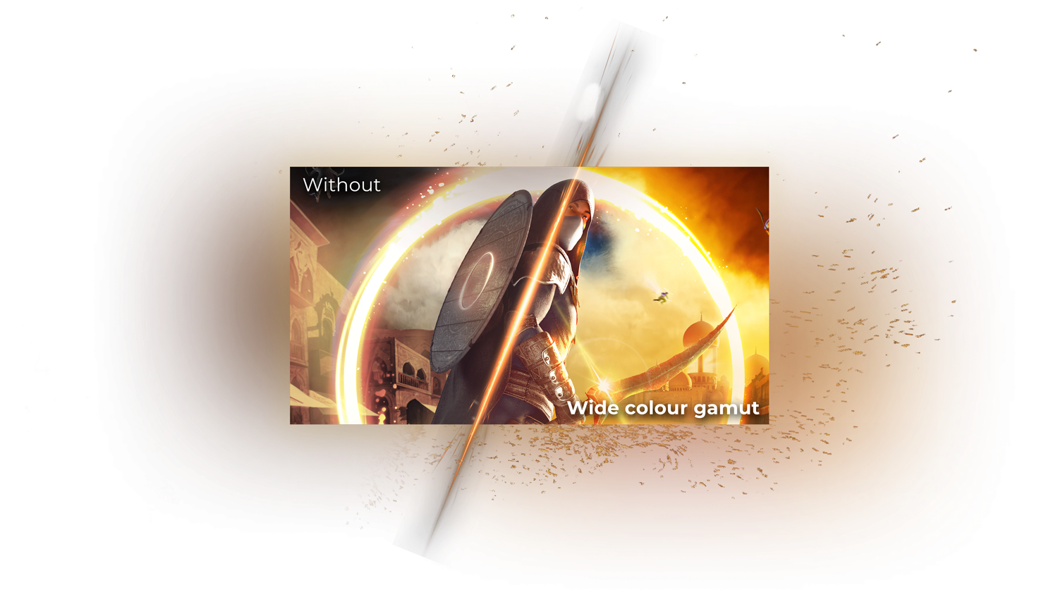 Quand vous profitez de vos photos, de vos vidéos ou de vos jeux, nous souhaitons que ce que est sur votre écran soit le plus réaliste possible. C'est la raison pour laquelle cet écran dispose de la technologie Wide Color Gamut qui lui permet d'afficher bien plus de couleurs que les écrans ordinaires. Et cela est dû à une solution matérielle spéciale et non à de simples réglages logiciels. Le résultat : des images plus vraies que nature aux détails affinés qui deviennent visibles grâce à l'étendue de la palette de couleurs.